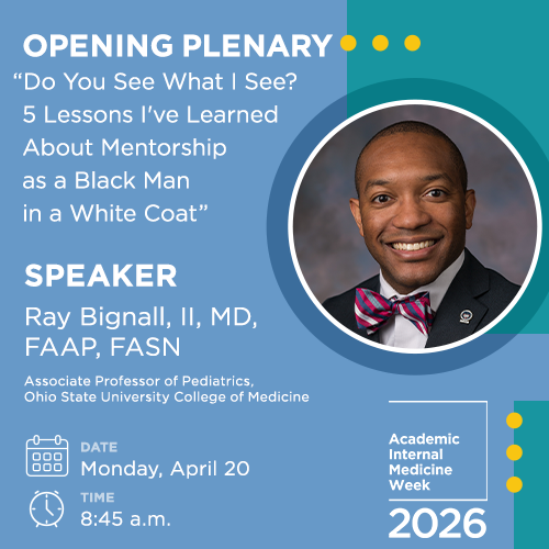 Academic Internal Medicine Week is the premier conference for faculty and staff in departments of internal medicine at medical schools and teaching hospitals. Join your friends and colleagues from April 19-22, 2026 in Seattle, WA!